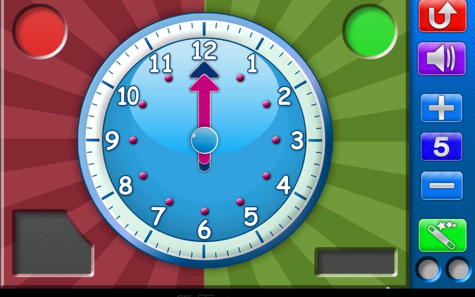 Εξηγούμε στους μαθητές ότι η μικρή βελόνα (ωροδείκτης) δείχνει την ώρα, δηλαδή τους αριθμούς που βρίσκονται μέσα στο ρολόι ( 1, 2, 3,.......12.). Στη συνέχεια, πατάμε μία φορά το κουμπί της βοήθειας (πράσινο κουμπί κάτω δεξιά) και εμφανίζονται οι αριθμοί έξω και γύρω από το ρολόι που δείχνουν τα λεπτά. Εξηγούμε στους μαθητές ότι η μεγάλη βελόνα (λεπτοδείκτης) δείχνει τα λεπτά. Ξεκινάμε πρώτα την εκμάθηση της ώρας με το "ακριβώς". Ανοίγουμε και κλείνουμε την πρώτη βοήθεια ώστε να δουν οι μαθητές ότι το "ακριβώς" είναι στο δώδεκα και στη συνέχεια ρυθμίζουμε το κουμπί δεξιά με τους αριθμούς στα 60 λεπτά. Πατώντας το κουμπί "+" η ώρα αλλάζει κάθε 60 λεπτά και οι μαθητές πρέπει να λένε κάθε φορά τι ώρα είναι, π.χ. η ώρα είναι 1 ακριβώς, 2 ακριβώς, κτλ. Στη συνέχεια καλούνται οι ίδιοι οι μαθητές να δείξουν στο ρολόι την ώρα που τους ζητάμε ή πχ "Σε δύο ώρες τι ώρα θα είναι;". Τέλος, σε εκτυπωμένα μικρά ρολόγια τους δίνουμε να χαράξουν με διαφορετικά χρώματα τους δείκτες του ρολογιού ώστε να δείχνουν την ώρα "ακριβώς" που τους ζητάμε.